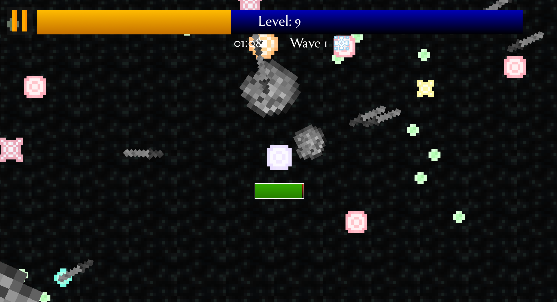 In its current state, the game features 9 unique weapons, 5 unique bosses, and many upgrades.